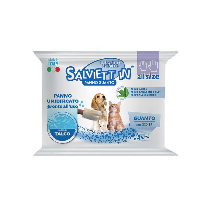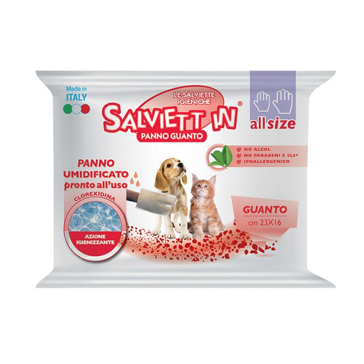 Vlažna rukavica za jednokratnu upotrebu, idealna za negu i čišćenje vašeg ljubimca. Salvettin rukavica je natopljena u nežnu formulu koja ne peni I ne zahteva ispiranje. Gusta tkanina I velika količina šampona omogućavaju dobro čišćenje , čak I kod ljubimaca srednje I velike veličine I gusted lake. Može se koristiti redovno a zahvaljujući svojim omekšavajućim I hidrantnim svojstvima, održava dlaku Vašeg ljubimca čistom, bez promene PH vrednosti. Film unutar rukavice ostavlja vašu ruku suvom I čistom.
